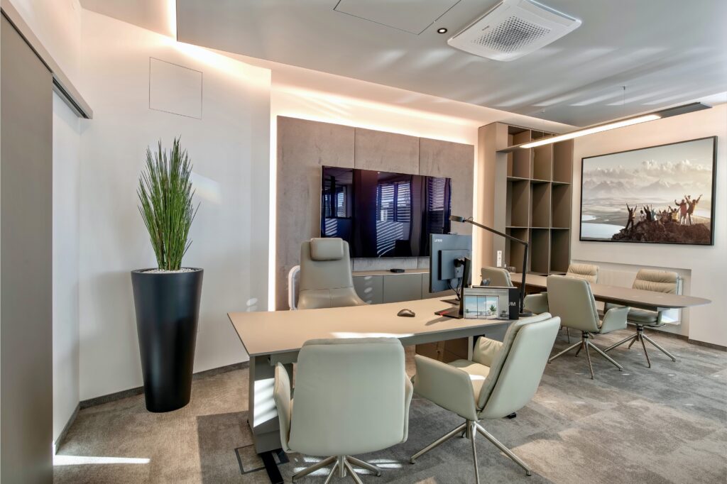 Für Unternehmen entwickeln wir klare, funktionale und ästhetische Raumlösungen, die Marken stärken und Mitarbeitern und Kunden ein gutes Gefühl geben.